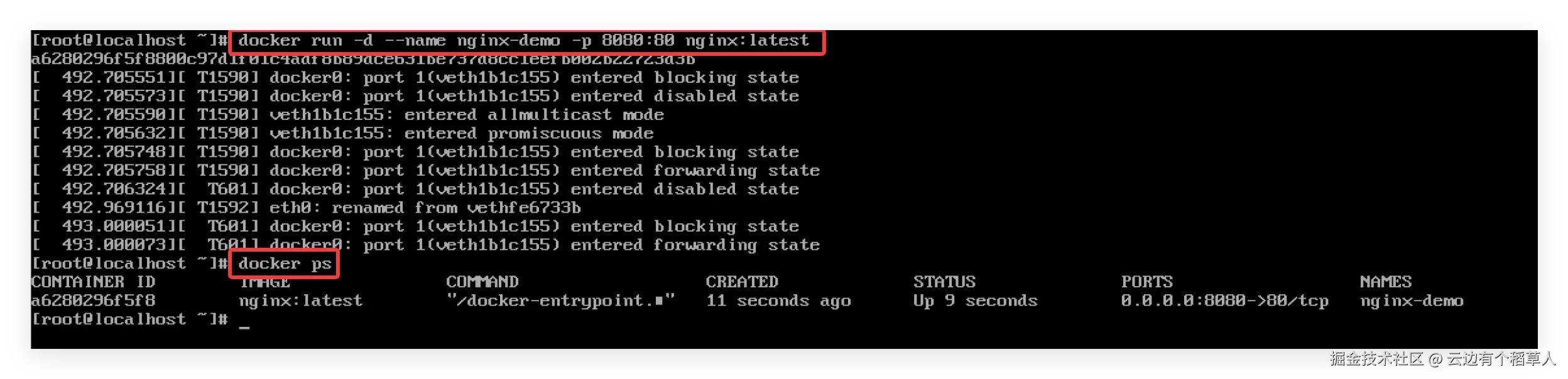 通过docker run命令启动Nginx容器,并配置端口映射(将容器的80端口映射到主机的8080端口):