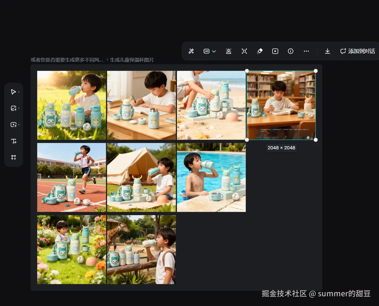 - • 批量生图,每张风格一致