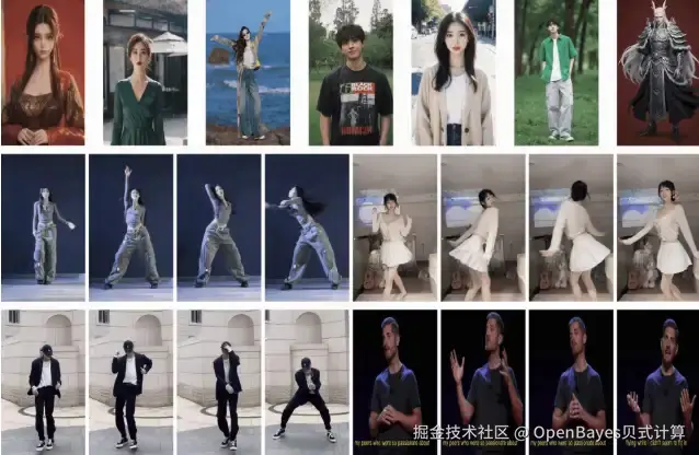 X-Dance 数据集包含 12 段驱动视频,其中 8 段为高动态舞蹈动作,4 段为低幅度日常行为,涵盖运动模糊、遮挡、姿态剧变等多种真实场景变化。针对每段动作,数据集构建多源参考图像,包括动漫角色、半身照片、跨风格人物以及姿态差异显著的图像,用于模拟空间结构不一致与时间起点不连续等情况。