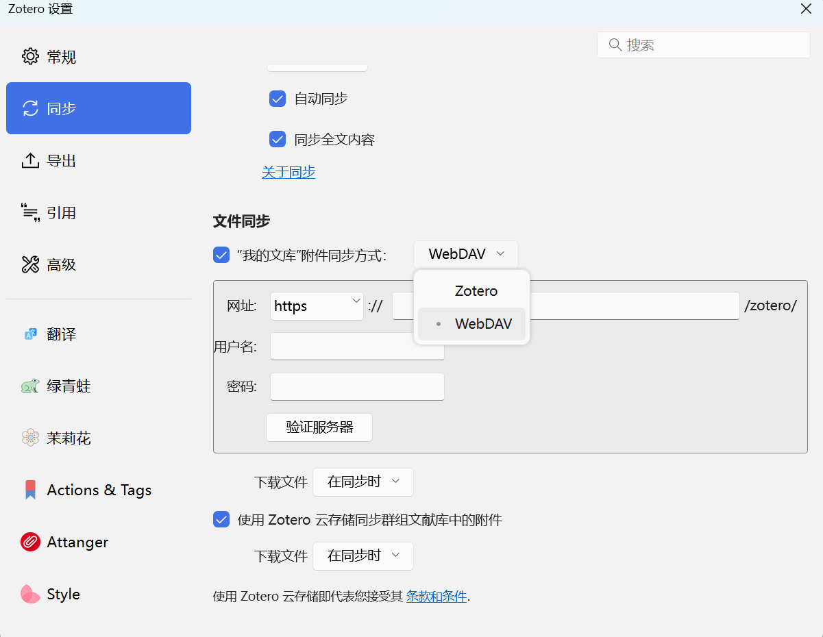 这时候用WebDAV 同步 PDF就是很实用的解决方案,稳定性比单纯依赖默认存储好不少。注册坚果云后,跟着网上的关联教程几步就能设好,它给的免费空间比Zotero 默认的大不少,不用额外花钱扩容,对学生党和普通科研人来说很友好。