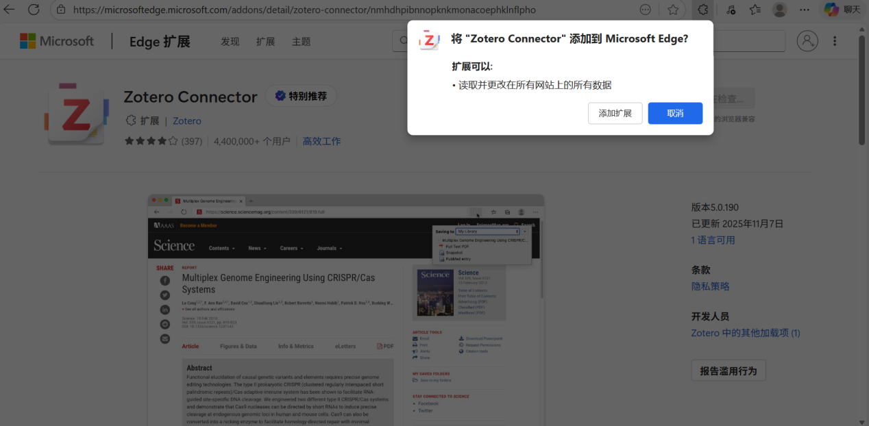 您可以在Zotero官网下载Zotero。下载完成后,会自动跳转到浏览器,提示您安装Zotero插件。