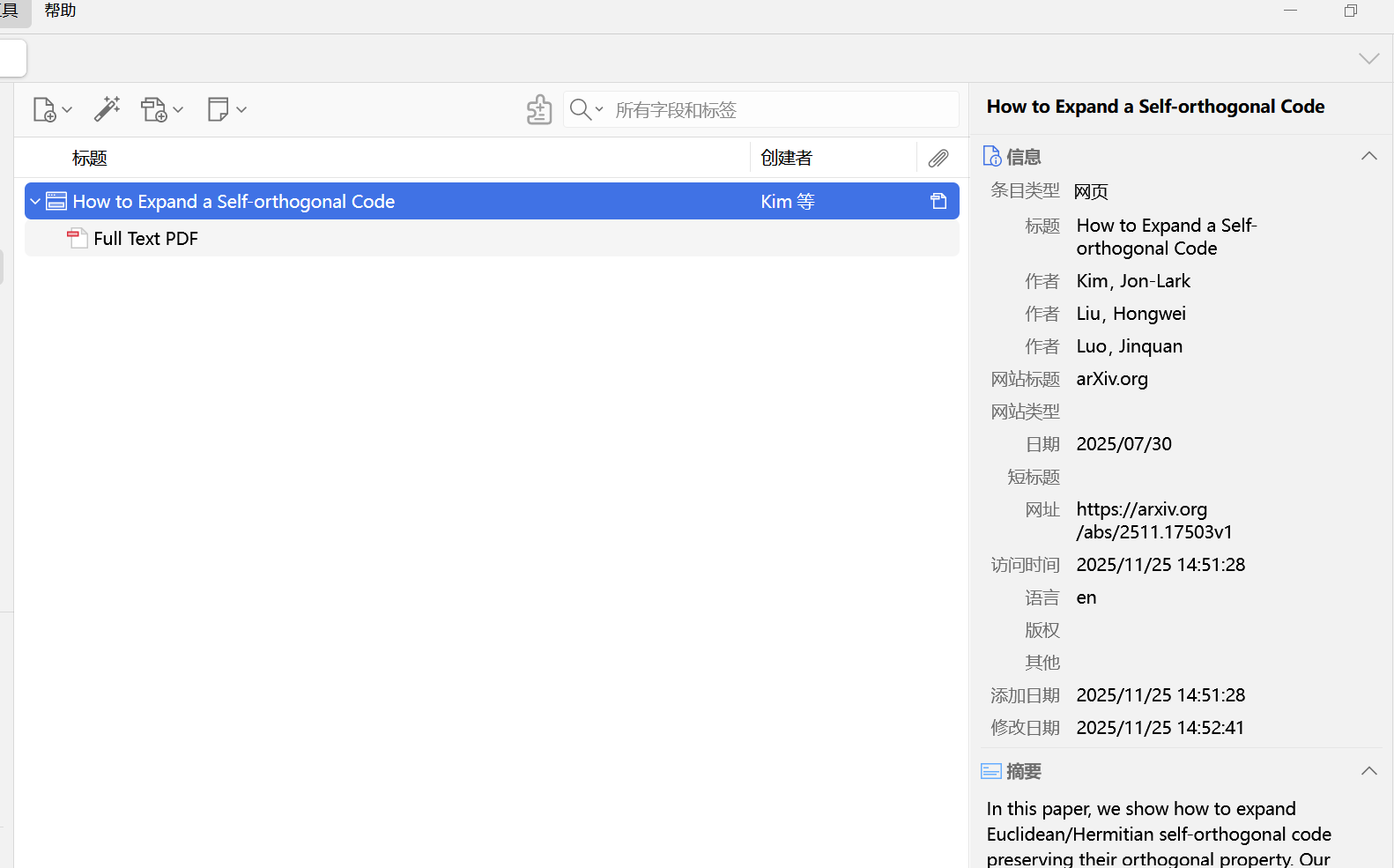 在Zotero中,您可以看到页面已经显示抓取成功。