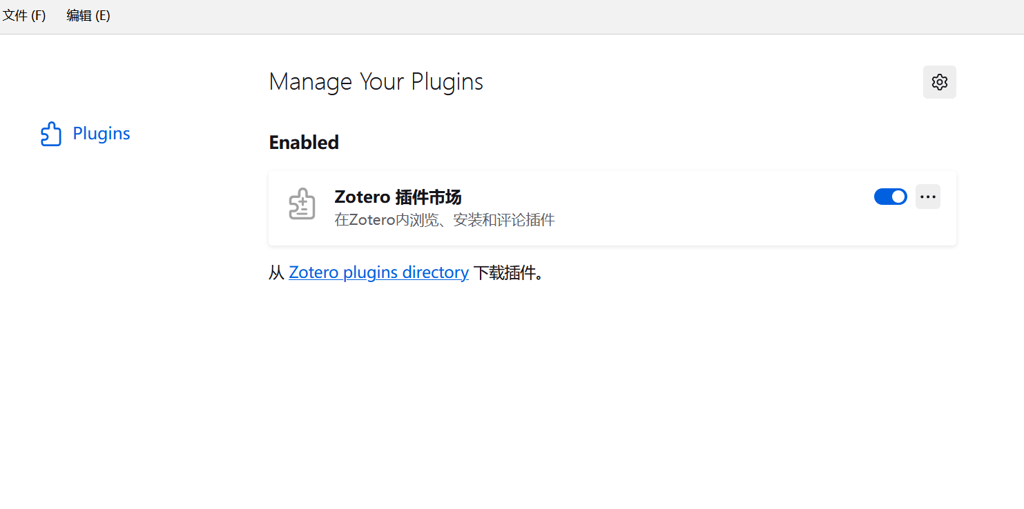 打开Zotero的工具->插件,将刚才下载的文件拖进去,随后您可以看到页面显示Zotero插件市场。