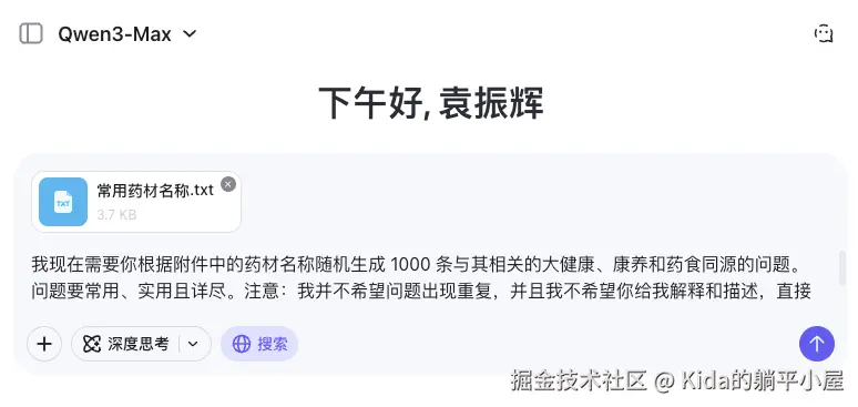 先导出常用的 183 种中药材名称并编写提示词让 Qwen3-MAX 帮我生成 5000 条不同的问题先。