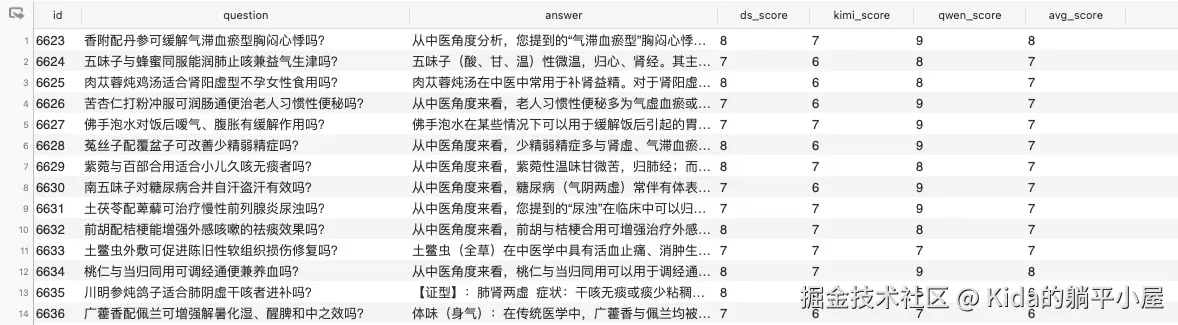 待全部分数导入完毕后,就可以计算每条记录的大模型平均分了,有了每条记录的平均分就可以计算整体回答质量的平均分。如下图所示: