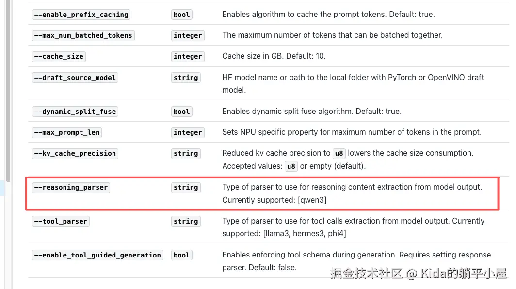 由于 Qwen3 模型是带有思维链模式的,看了一遍 OpenVINO 的官方文档,目前只有 OpenVINO Model Server (OVMS) 提供 --reasoning_parser 参数用于思考链推理,而且也只支持 qwen3。