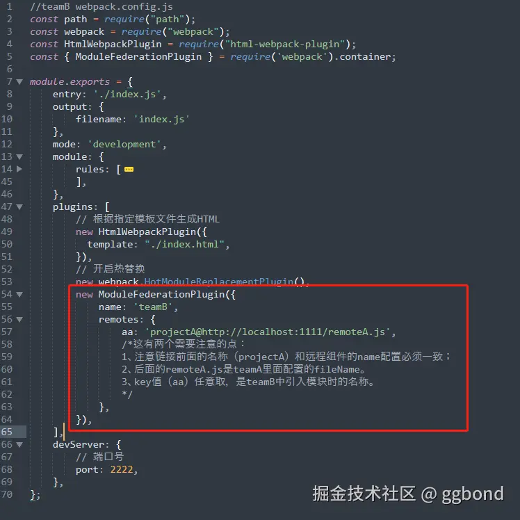 filename: 'remoteA.js', // 暴露的模块统一打包在这个名字,可以任意取