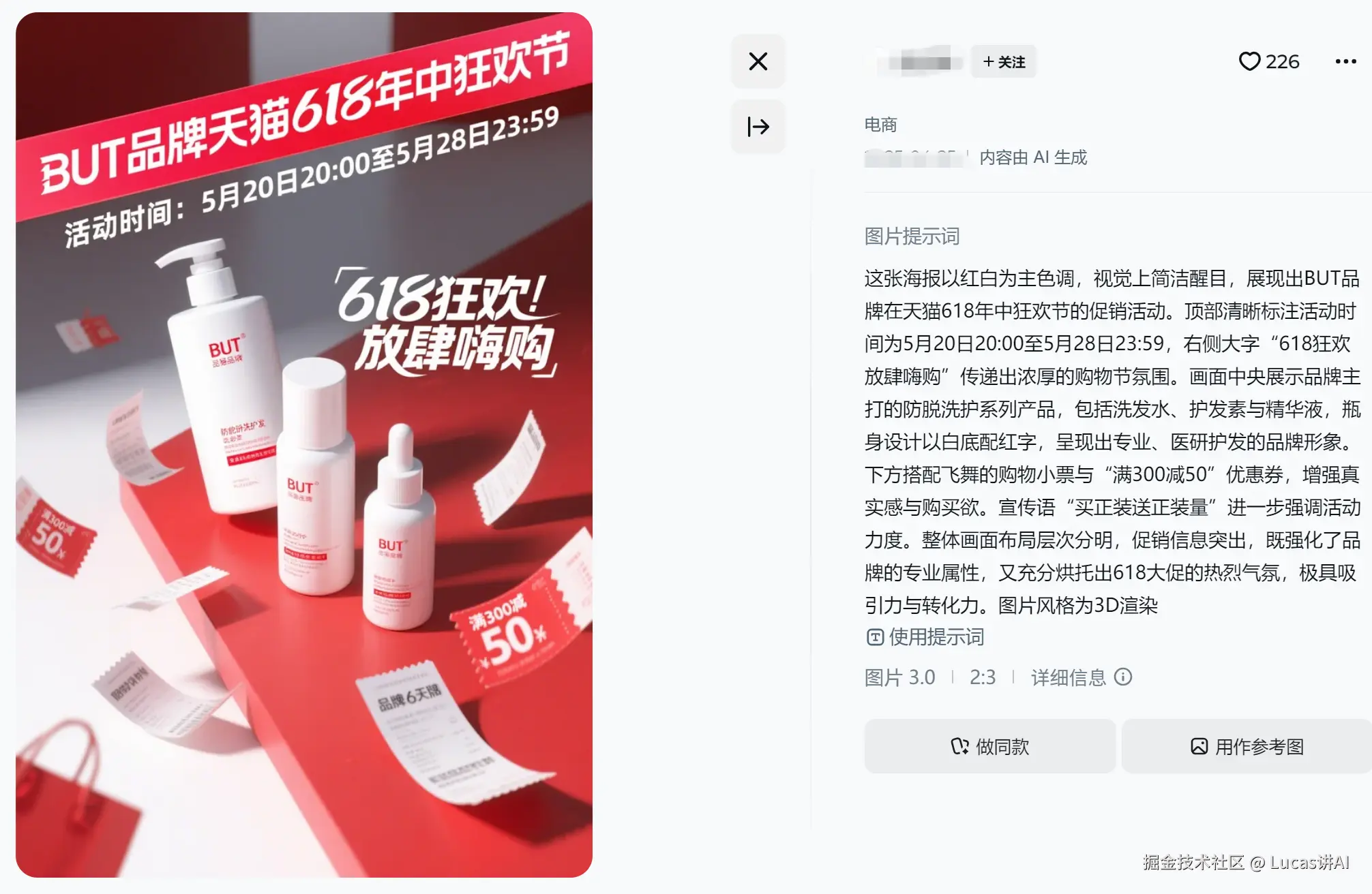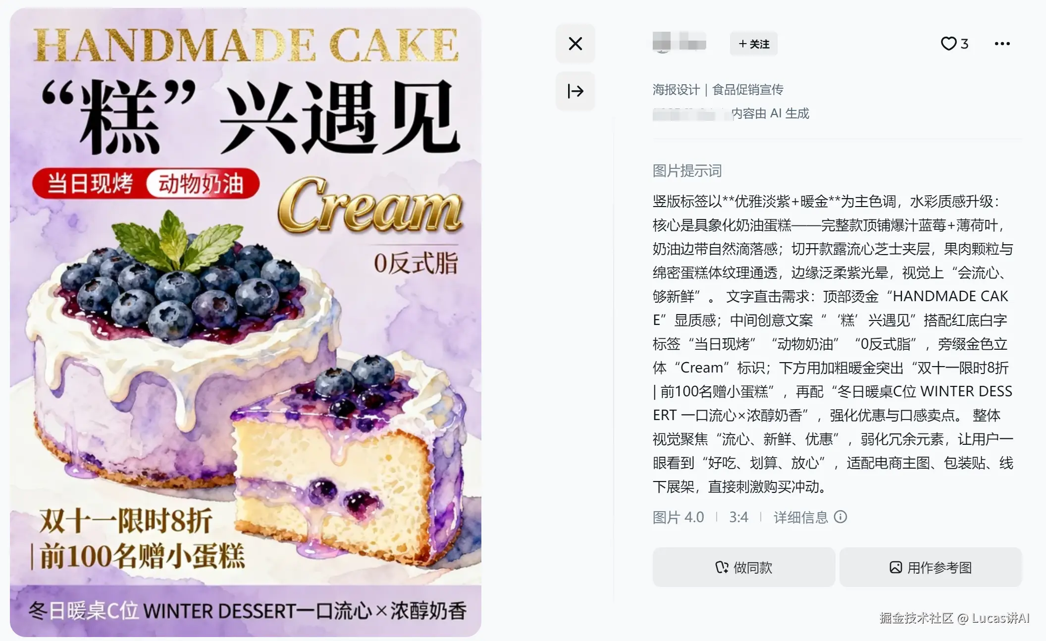 在这种情况下,用即梦生成底图 / 初稿 + 我简单修一修/排版,就可以达到“观感不错 + 成本低 + 出图快”的效果。对于设计师 + 内容运营 + 兼顾副业的人来说,性价比是真的高。