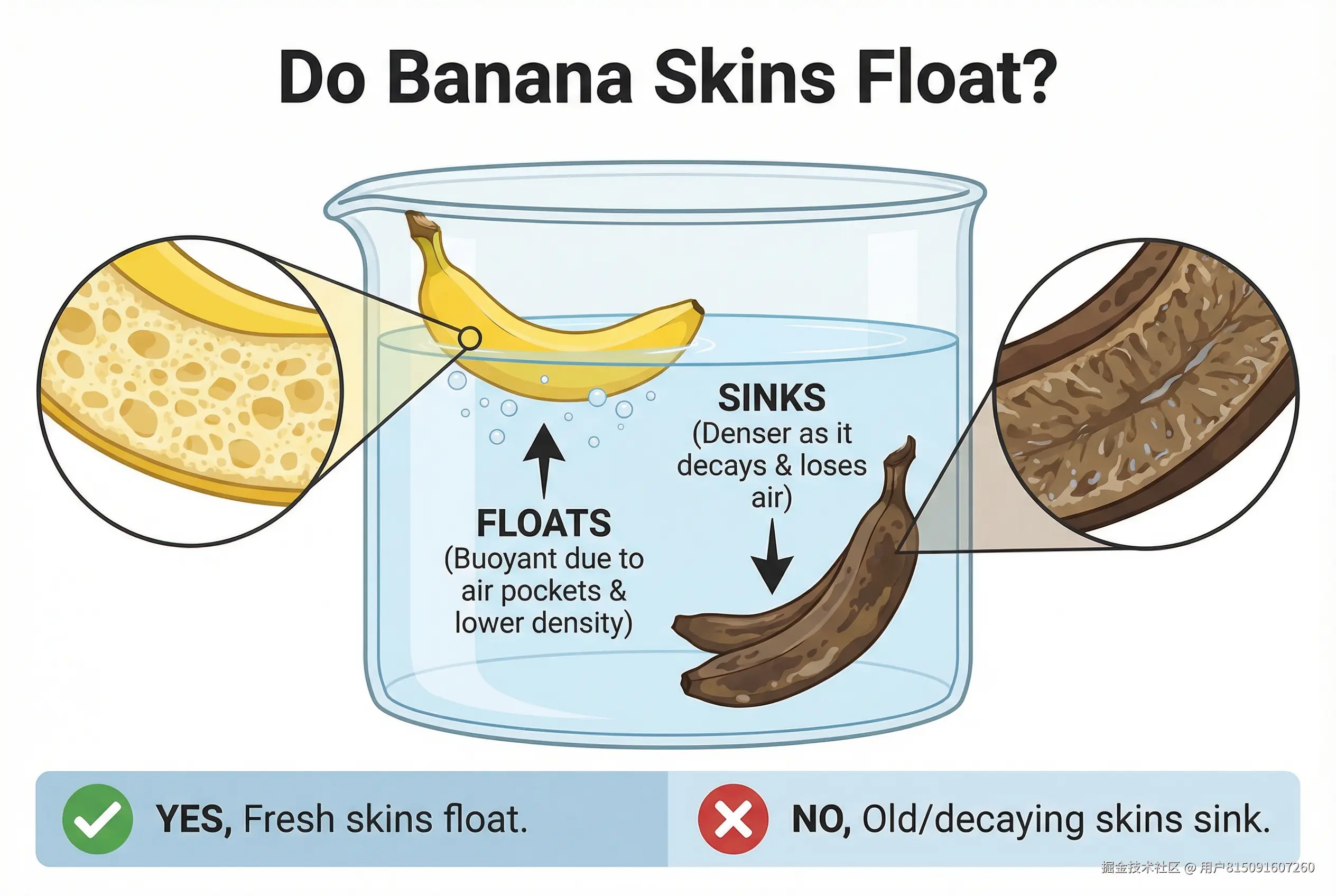 “以图形化的方式回答:香蕉皮会漂浮吗?”