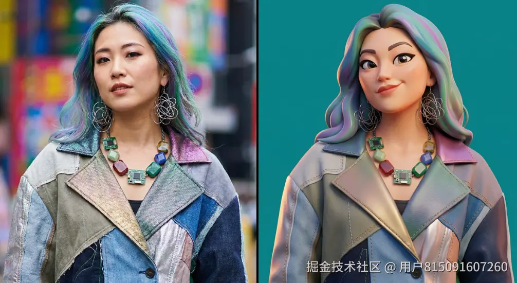 “将上传照片中的人物制作成高度风格化的 3D 夸张卡通形象,具有富有表现力的五官和俏皮夸张效果。使用光滑材质、干净质感和柔和环境光照,背景采用大胆色彩突出角色魅力。”