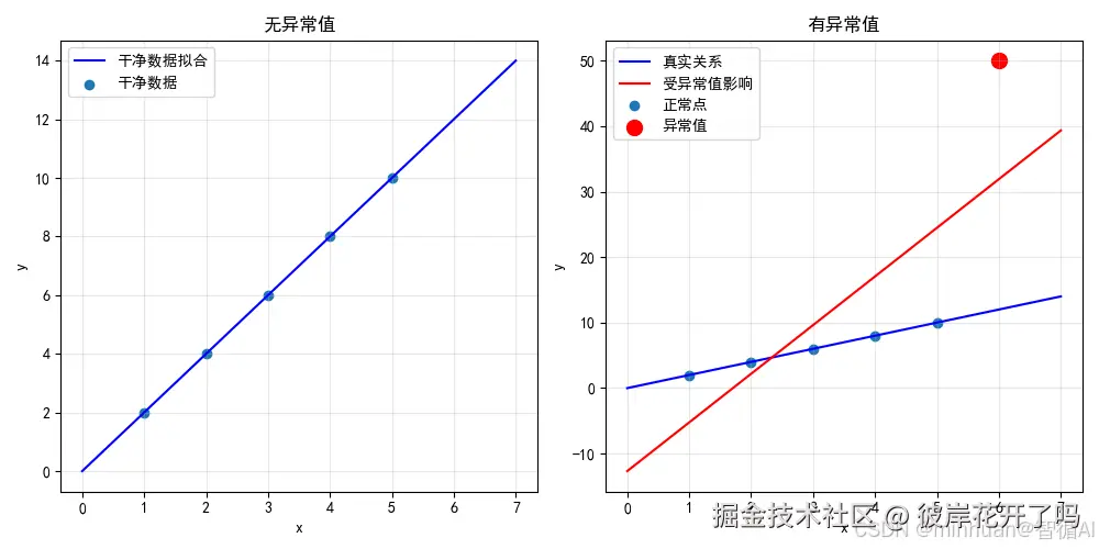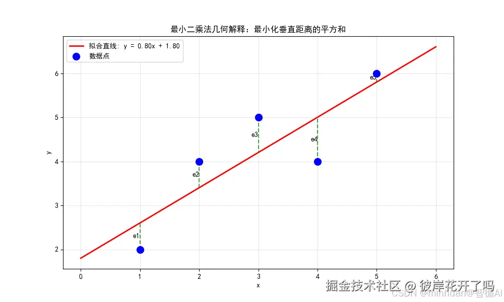 - **直观的理解:**想象你在草地上插了几个木桩,现在要拉一条直线绳子,让绳子尽可能接近所有木桩。你怎么判断绳子拉得好不好?