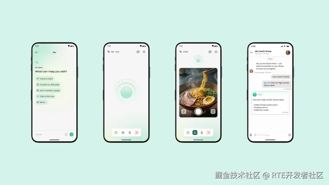 教练与营养师辅助: Ria 将被整合到用户与教练、营养师的沟通中,协助双方快速调取数据、回答问题,并可转录通话内容,提取关键信息。