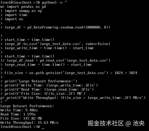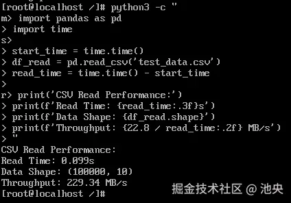 | CSV读取性能 | 229.34 MB/s | 缓存管理出色,读取性能卓越 |