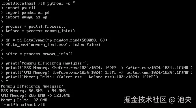 测试数据显示,openEuler在数据处理各环节展现出显著性能优势。数据生成环节耗时仅0.2秒完成10万行数据集创建,体现高效的内存管理机制。CSV文件读写性能表现突出,写入吞吐达15.61MB/s,读取吞吐达到229.34MB/s,反映系统在I/O调度和缓存管理方面的深度优化。