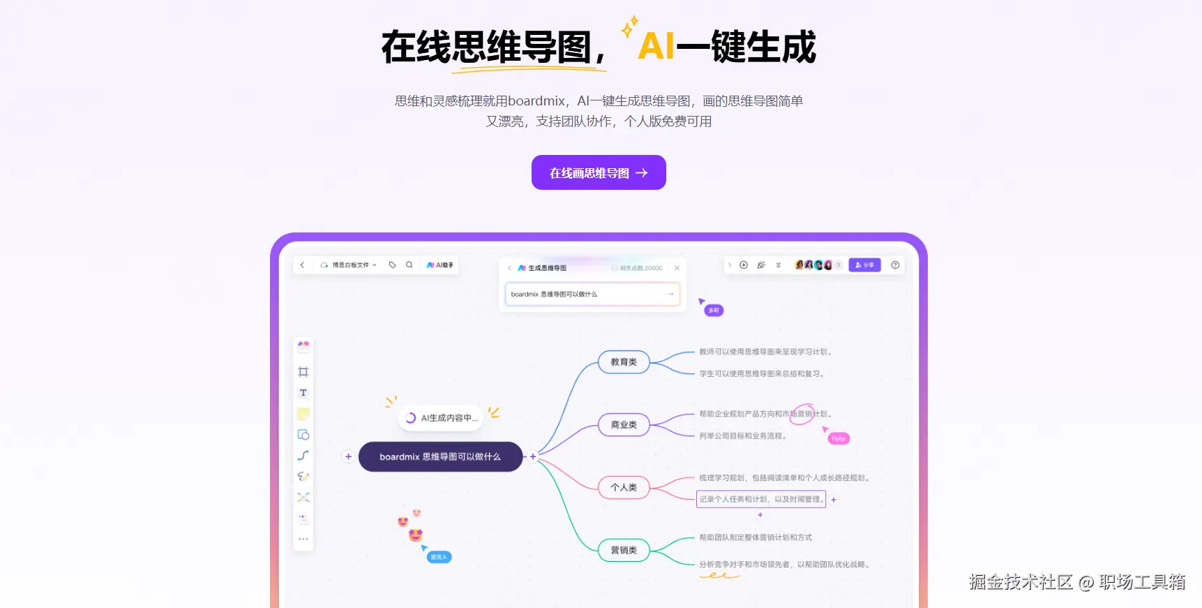 如果你在国内工作,或者团队需要一起协同编辑思维导图,boardmix 是个不错的选择。