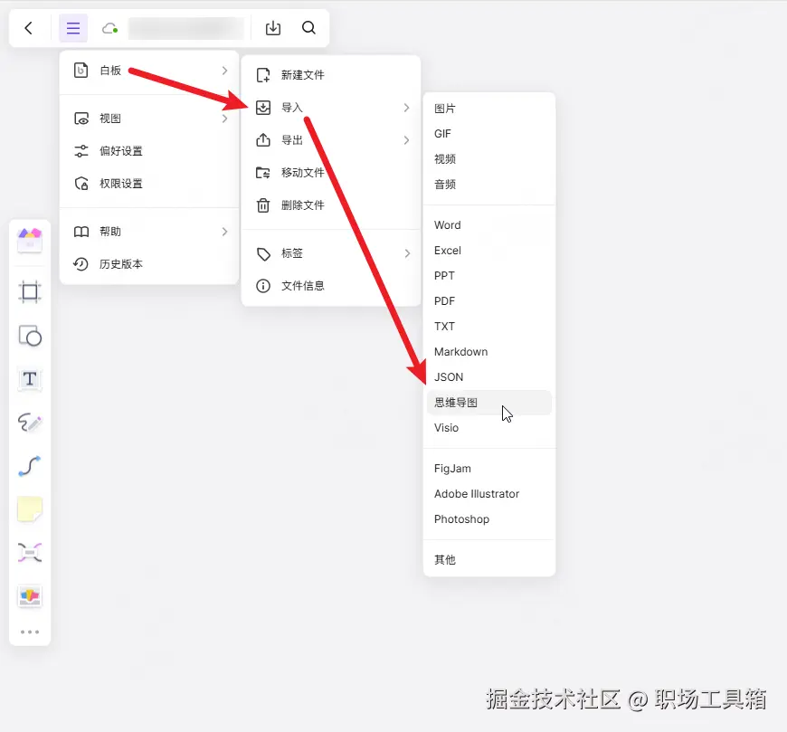 值得一提的是,boardmix拥有良好的文件兼容性,支持导入外部的思维导图文件——mindmanager(.mmap)、freemind、xmind,如此一来,之前基于 MindManager 保存的文件,可以无缝迁移到新的导图软件 boardmix 中。