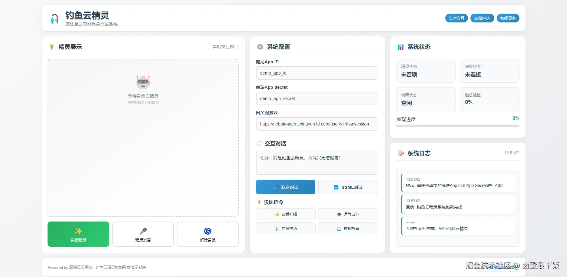 最近在开发【钓鱼云精灵】小程序,突然间接触到了魔珐星云的具身智能体,于是乎,一个大胆的想法出现了,是否可以将魔珐星云整合到我的钓鱼云精灵中呢。