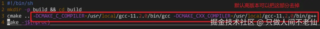 # 正常我理解这个时候是不用指定编译器版本的, 因为我已经设置了环境变量, 应该默认就是gcc11, 但是很遗憾, 我重试之后, 还是会用gcc 4.8.5来编译, 因此这里指定了编译器版本