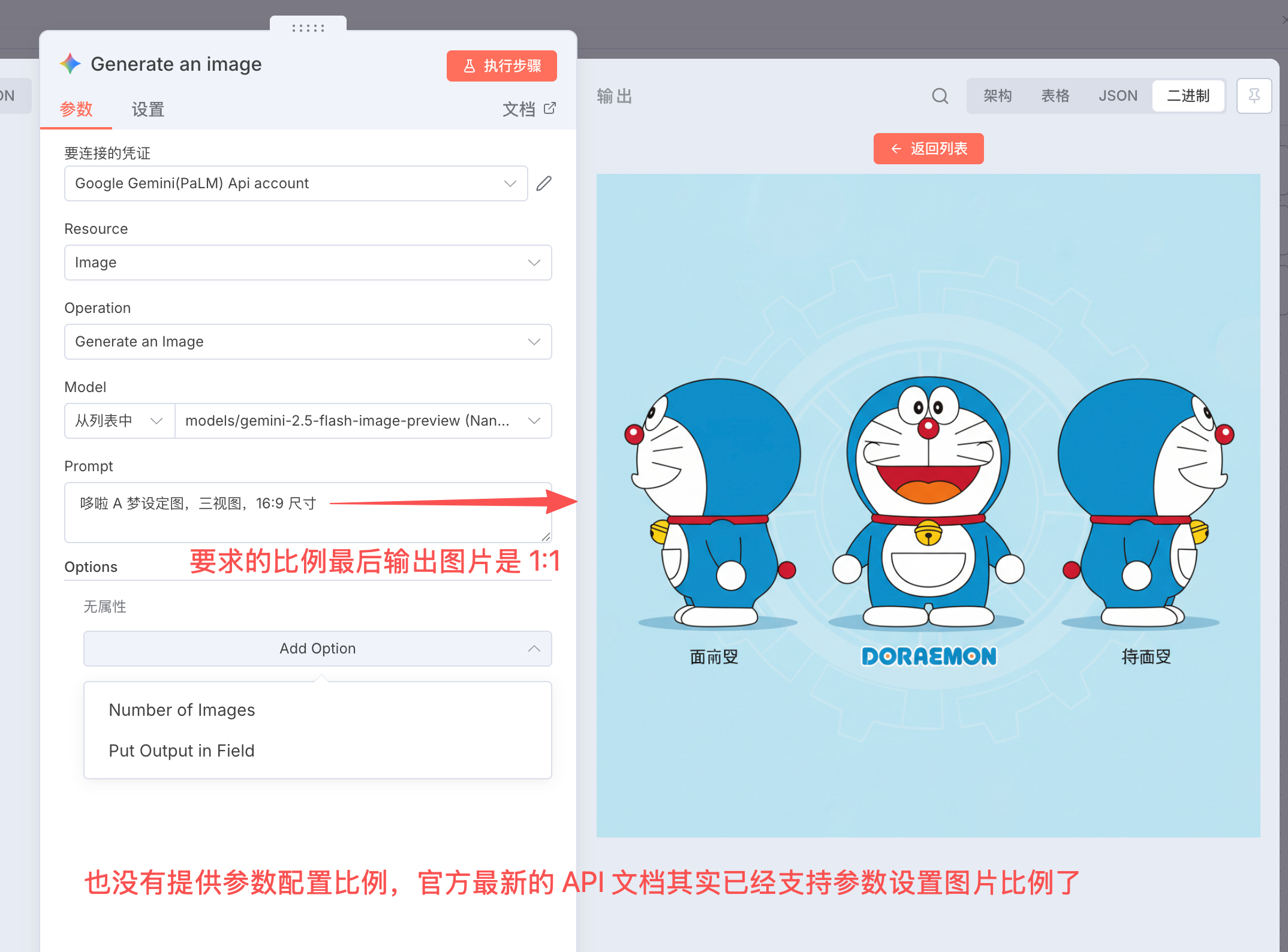 想做图生图,不支持直接扔链接。只能引用前一个节点给的 File (binary 二进制文件),虽然支持添加多个图片,实测下来十分难控制。