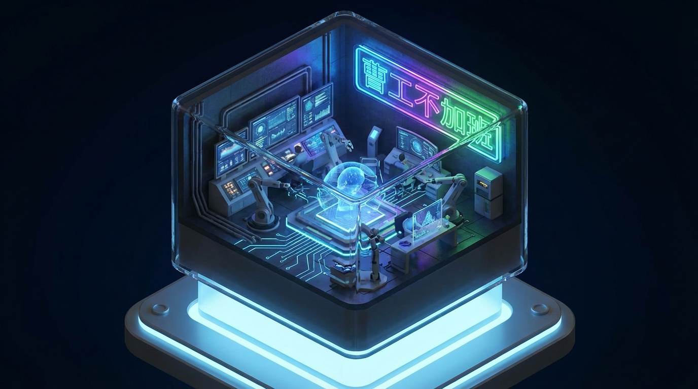生成一个透明的键帽里有个充满科技感的工作室场景,后面的墙上有“曹工不加班”霓虹灯,2.5D CG 场景。 - Aspect Ratio: 下拉直接选