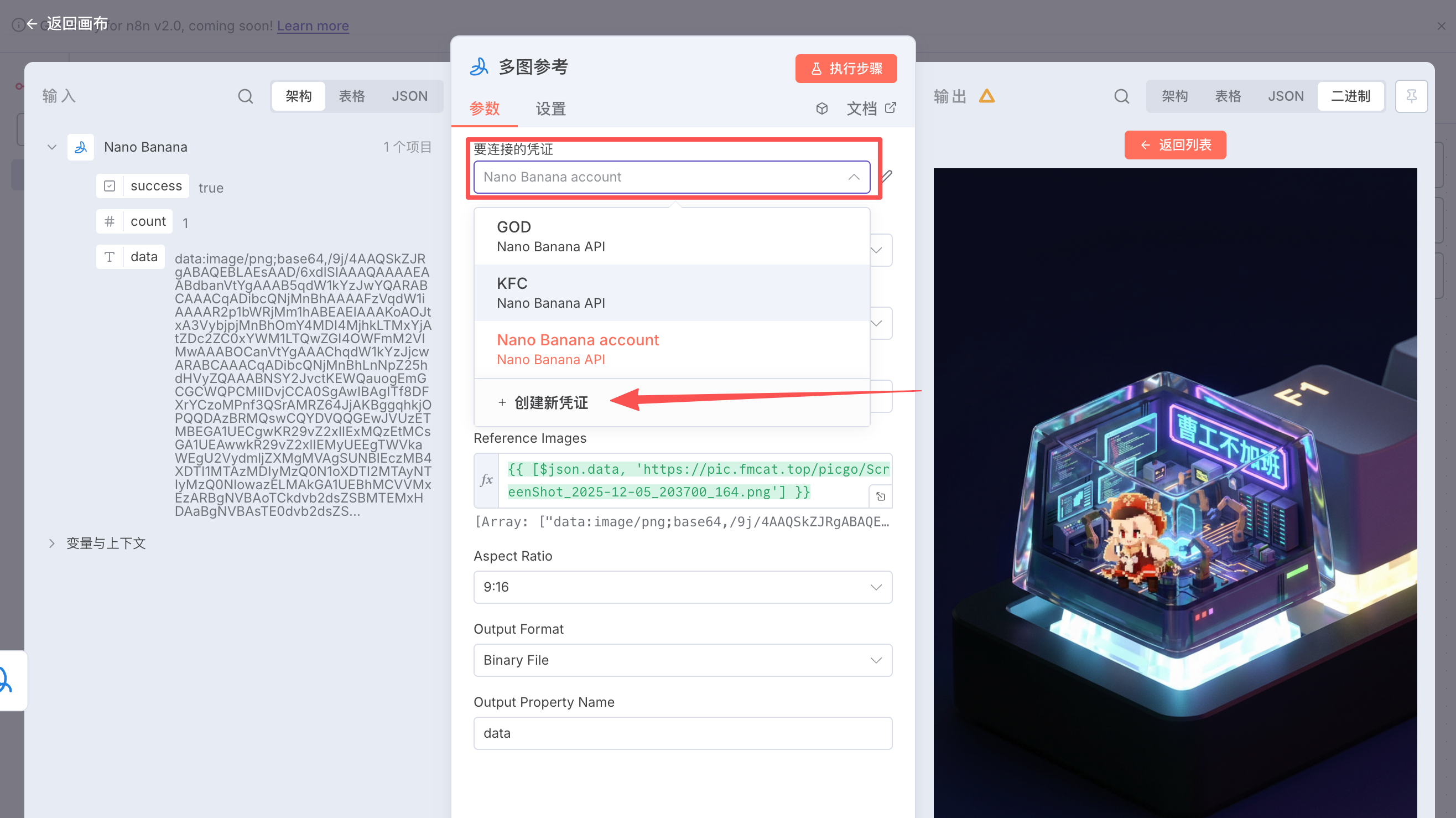 最近被 Nano Banana Pro 的内容刷屏了,出色的多图参考一致性,图文并茂的文字排版,让很多以前觉得不可能的事情变成了可能(美工:冲我来的),很多自动化玩家都想把它接入 n8n 工作流。