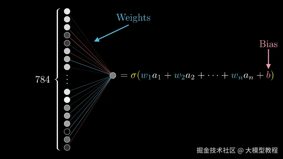 这只是一个层对某一个神经元的计算,下面是一个比较形象的图(请忽略数字)