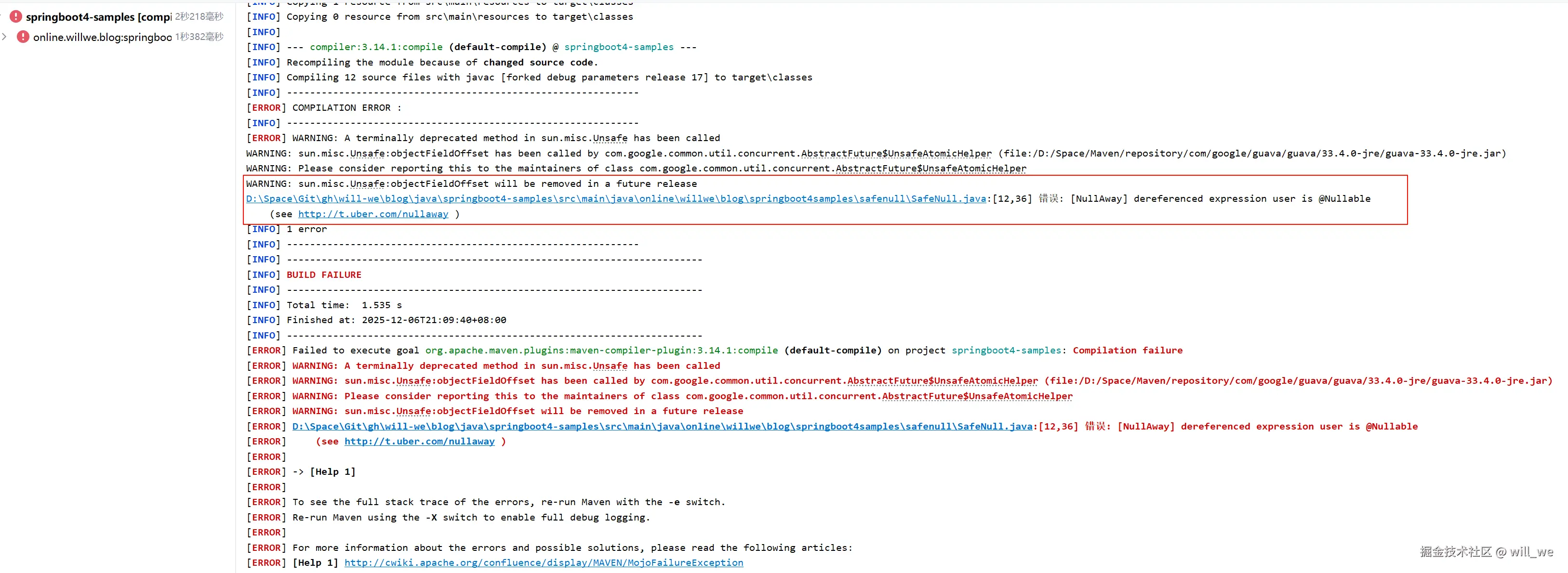 注意 NullAway JSpecify 模式需要较新的 javac 版本,因此我们建议如果可以的话使用 Java 25,否则大多数 JDK 21.0.8+发行版(除 Oracle JDK 外)应该支持 -XDaddTypeAnnotationsToSymbol=true 标志,这将允许 NullAway 按预期工作。未来可能会提供这个标志的 Java 17 后端。如果像 Spring 一样需要保留 Java 17 基线,你可以使用 Java 25 工具链,并像jspecify-nullaway-demo.中所示那样配置 Maven 或 Gradle 构建的 javac 选项 --release 17