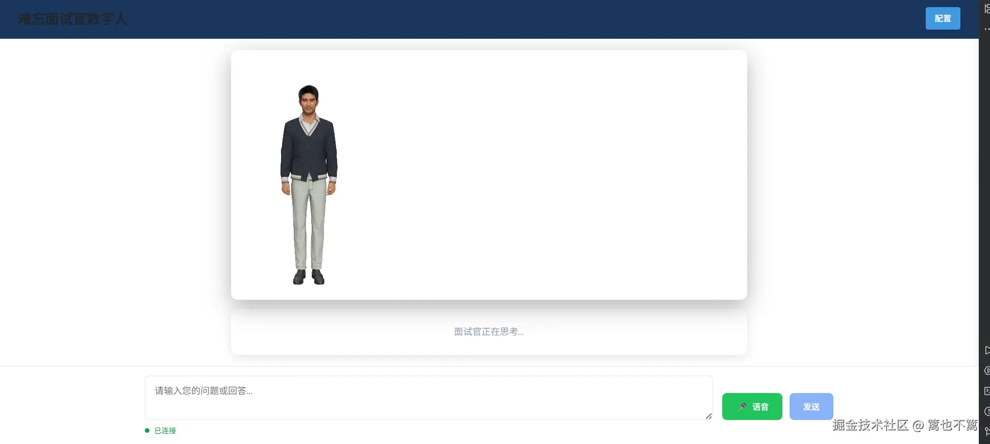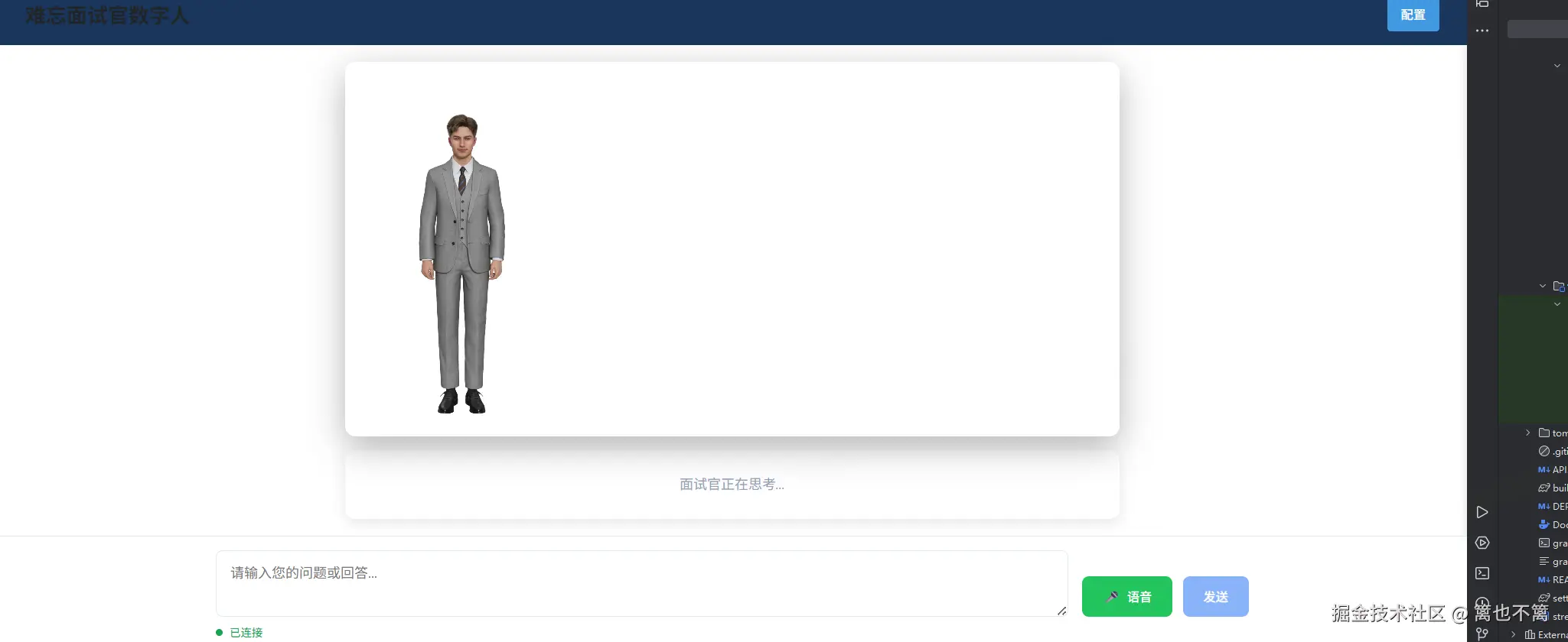 "难忘面试官数字人"是一款基于 Vue 3 + TypeScript + Vite 构建的原创智能虚拟人面试系统,为用户提供沉浸式的面试模拟体验。