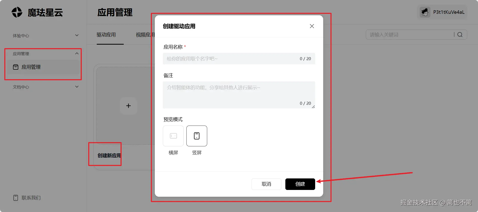 登录后,进入开发者中心,点击"应用管理",然后点击"创建应用"按钮。