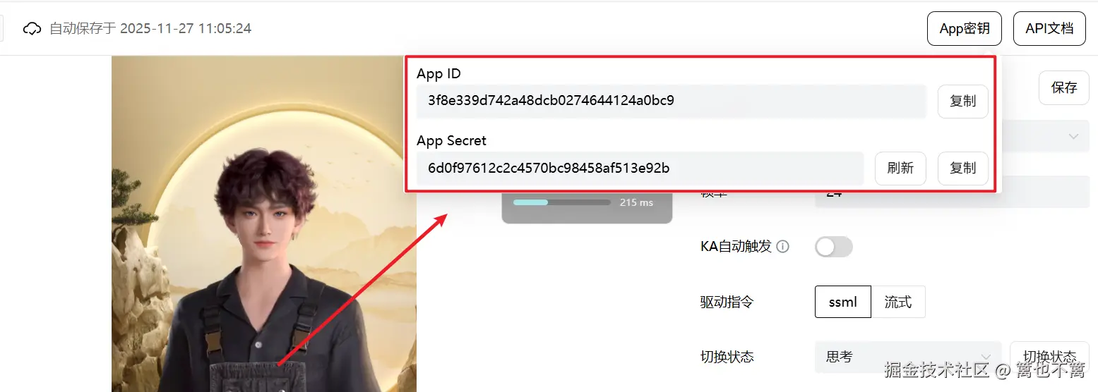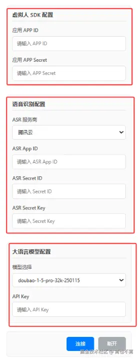 - 语音识别配置:选择ASR服务商(如腾讯云ASR),输入相应的连接参数(App ID、Secret ID、Secret Key)