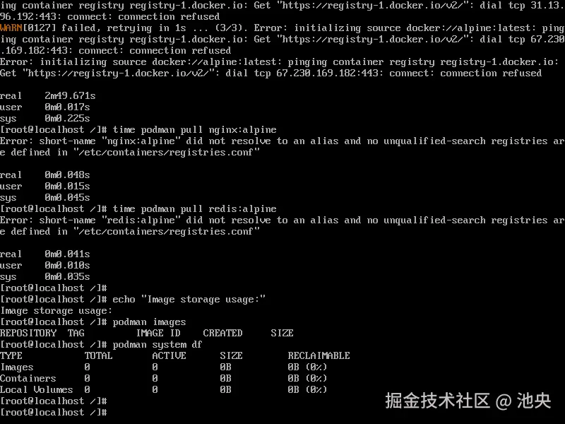 - 容器启动性能:评估Podman在冷启动和热启动场景下的容器初始化效率