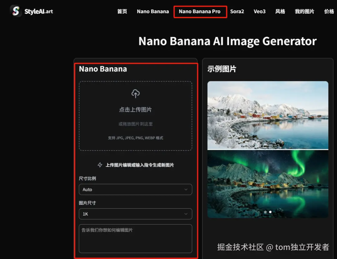 1.访问StyleAi官网的Nano banana Pro模型→styleai.art/zh/nano-banana-pro