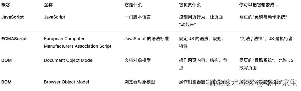 - 也因为我知道,只要你理解了 JavaScript、ECMAScript、DOM、BOM,你就真正入门了前端世界。