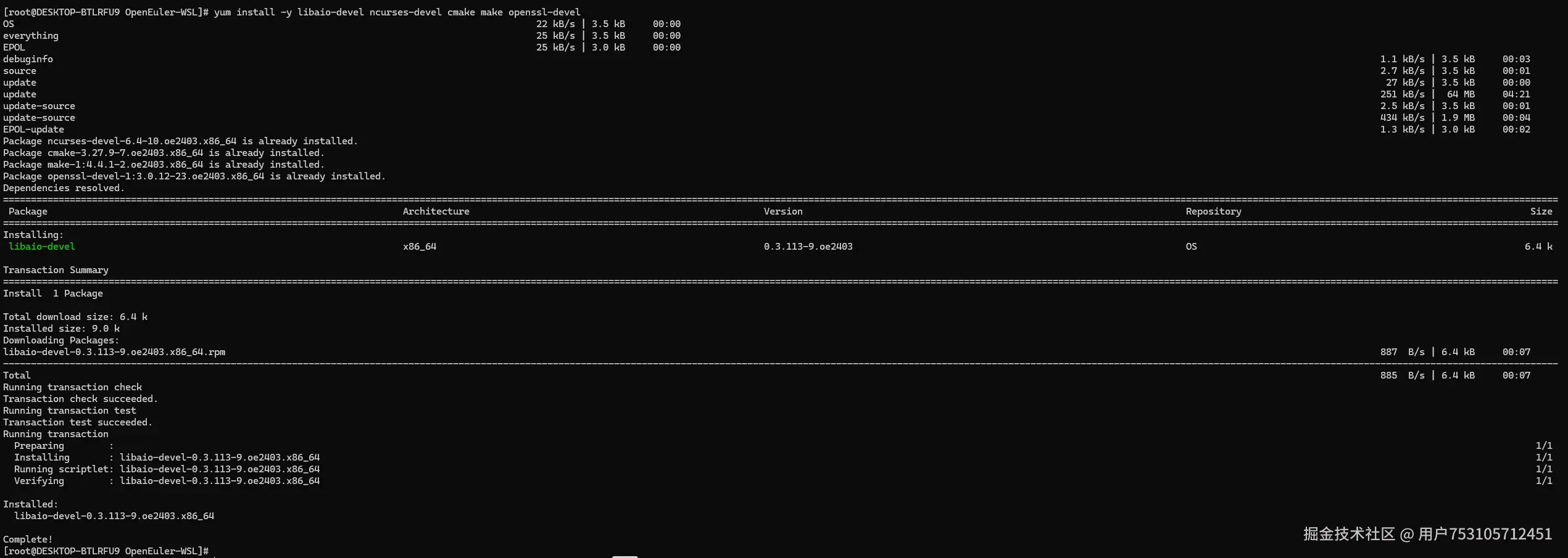 评测环境说明:基于本地物理机搭建的openEuler 24.03 LTS SP3系统,硬件配置为Intel i7-12700H处理器(14核20线程)、32GB DDR5内存、1TB NVMe固态硬盘;已完成系统基础环境配置,包括gcc 11.3.0编译环境、yum源优化及内核参数调优(参考byteqqb.blog.csdn.net/article/det…