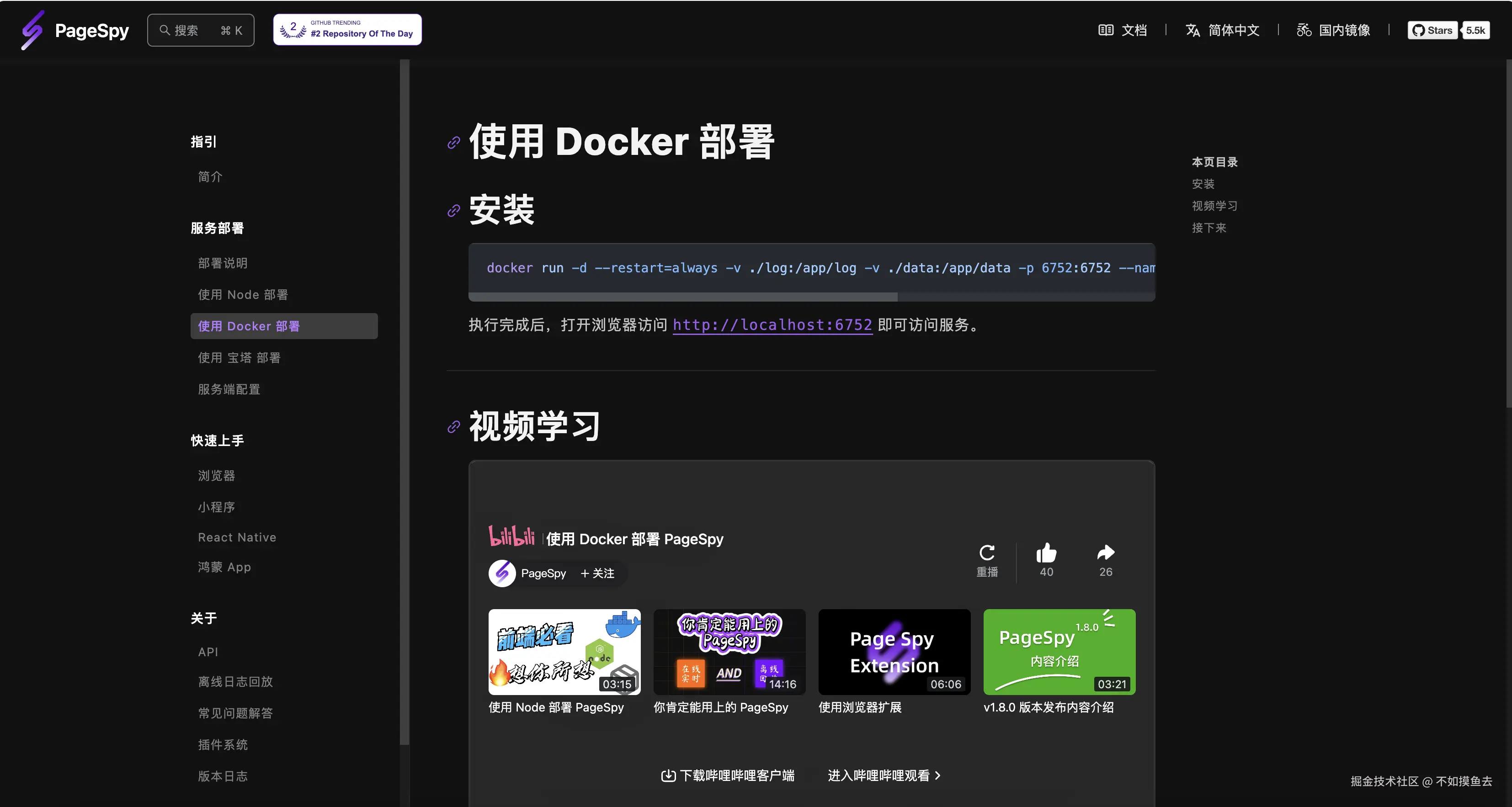 部署文档见部署说明:www.pagespy.org/#/docs/depl… Docker 部署(正好买了个轻量级服务器没用):