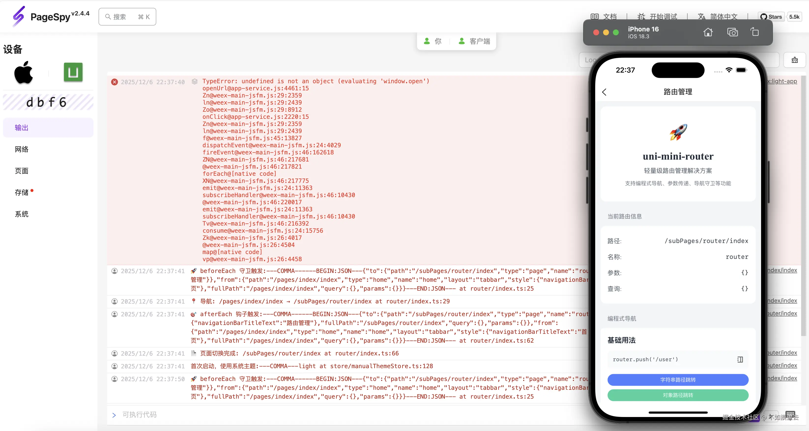 PageSpy 是一款用来调试 Web / ReactNative / 小程序 / 鸿蒙 APP 等平台项目的工具。支持 Web 的远程调试工具不少,但能支持 uni-app 的调试工具真的是凤毛麟角了。