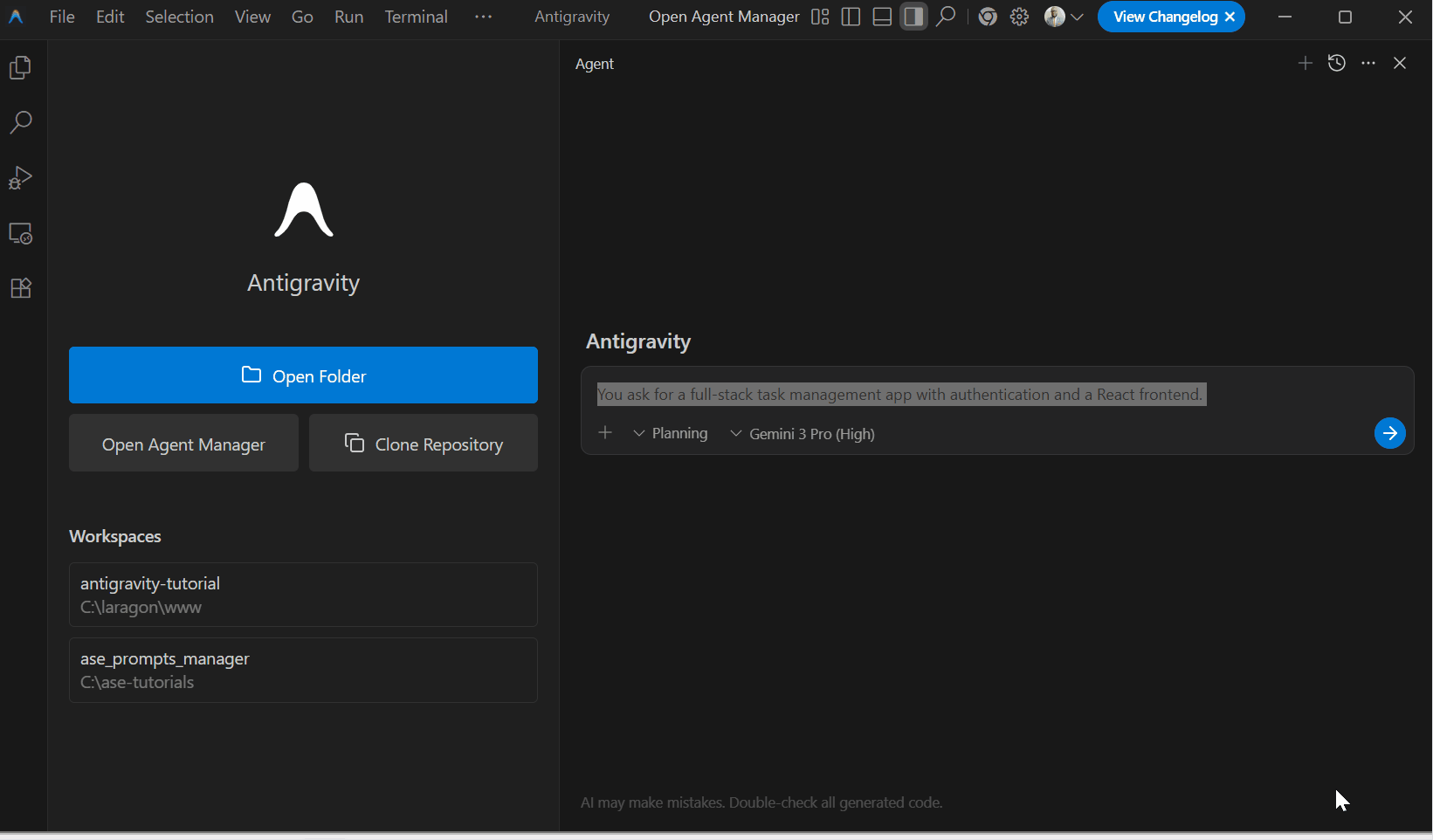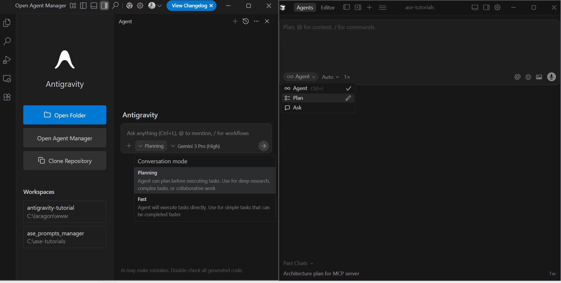 Antigravity 有两种不同的模式。