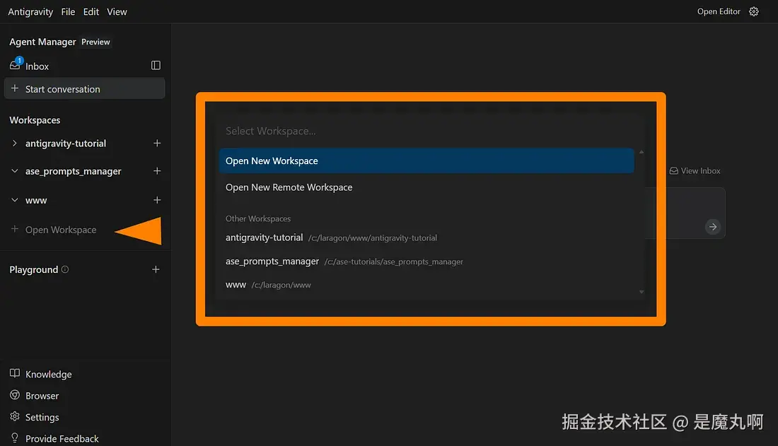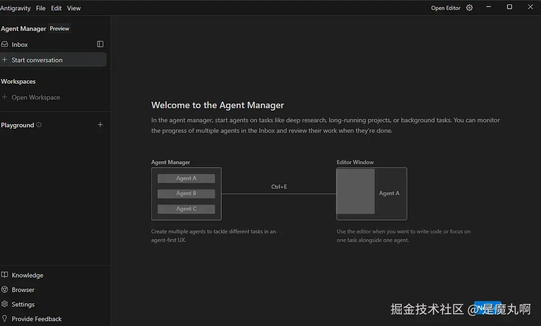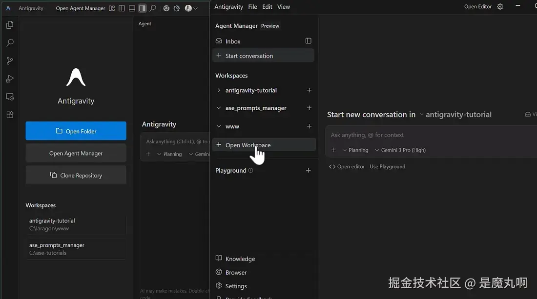 Antigravity 将你的环境分为两个不同的界面。