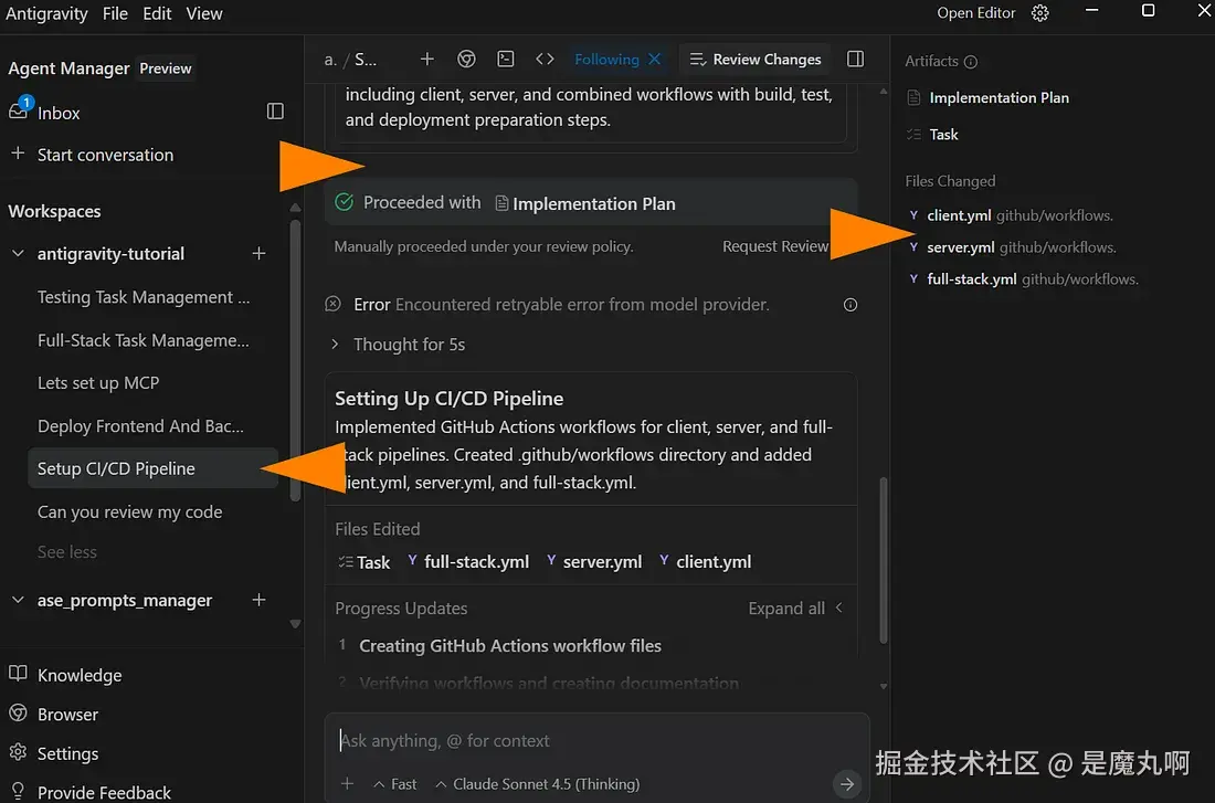 - 将焦点切换回 Antigravity