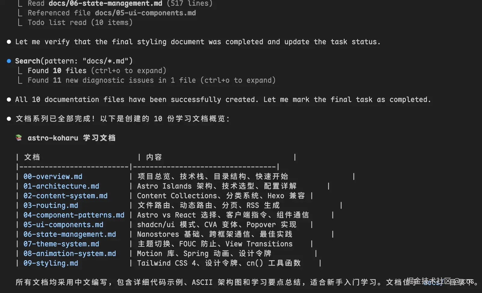 > 我需要对这个项目进行学习,学习其整体结构与核心实现,输出一系列 md 文档在 docs 文件夹下供我参考。