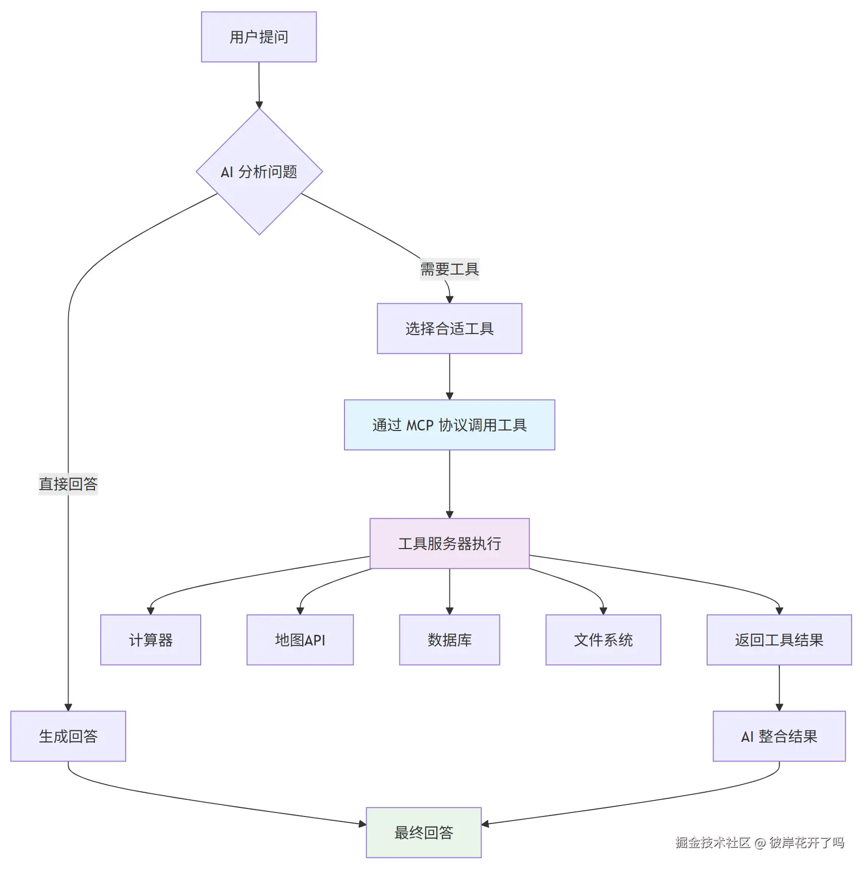 - 5. 返回结果 → 工具结果返回给 AI