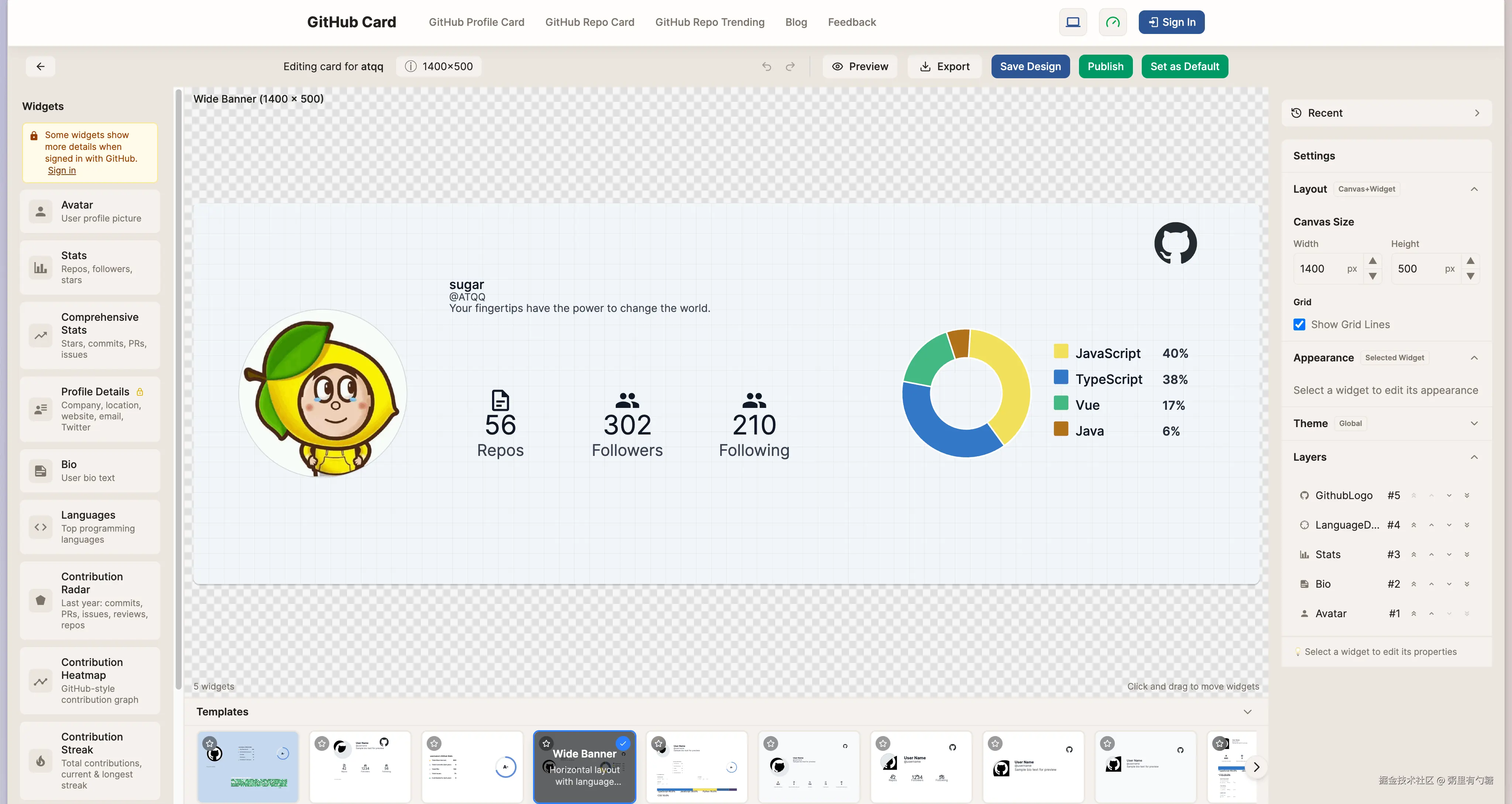 - GitHub 分享卡片生成