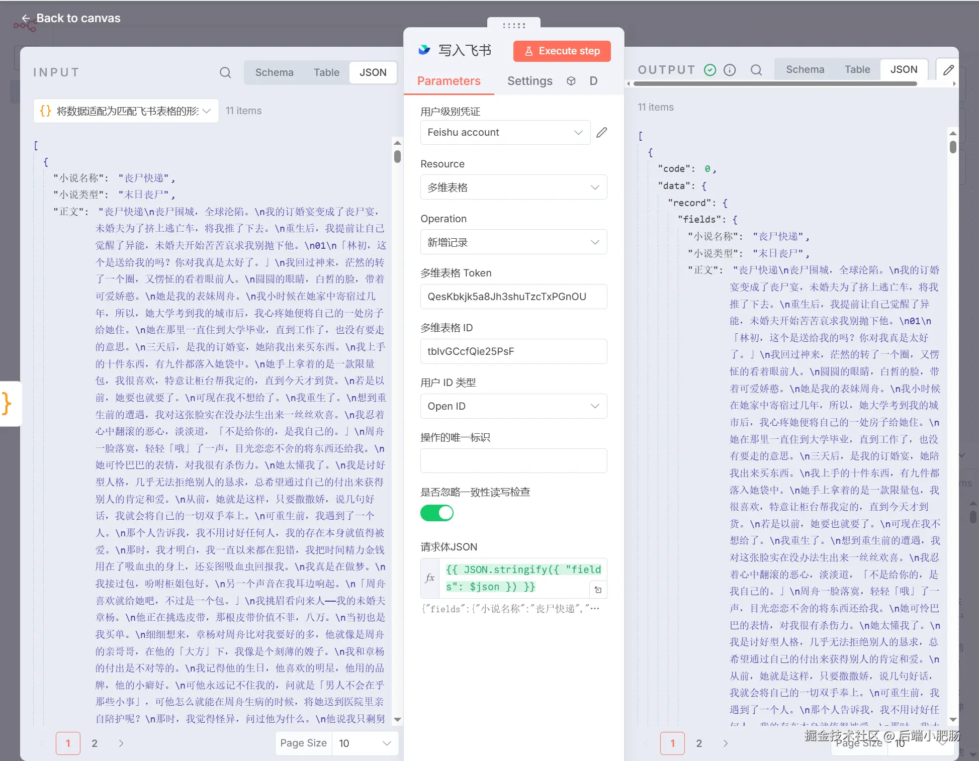 第一个部分是将本地已经收集到的爆款短篇小说写入到飞书多维表格作为小说写作素材库。