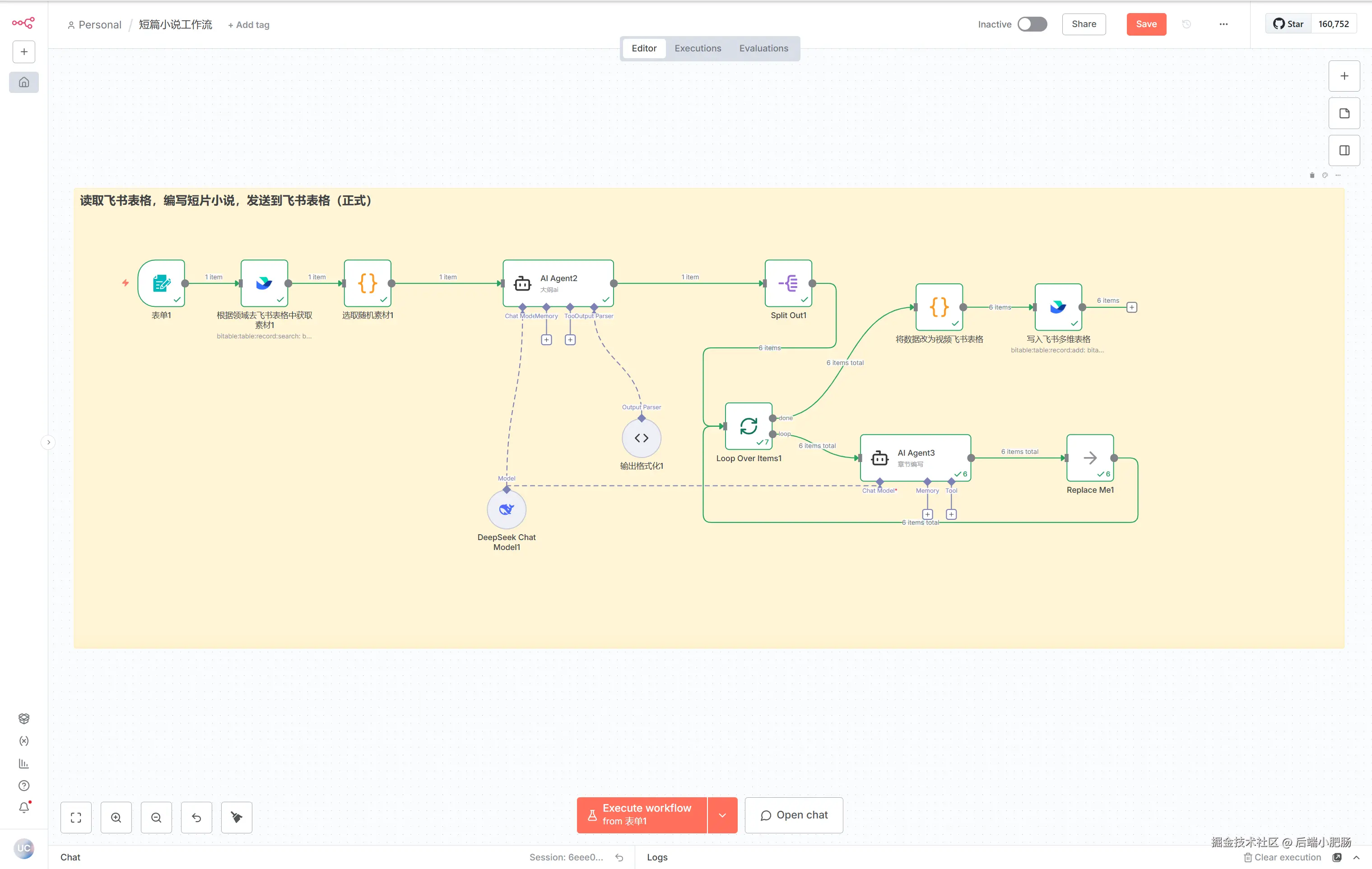 最近在带行动家社群做 AI 漫剧时,版权问题一直让我们很头疼。为了彻底解决漫剧的剧本荒,也为了满足大家在知乎、番茄等平台投稿写文的刚需,我专门开发了一套 n8n + 飞书 + AI Agent 的超级工作流。