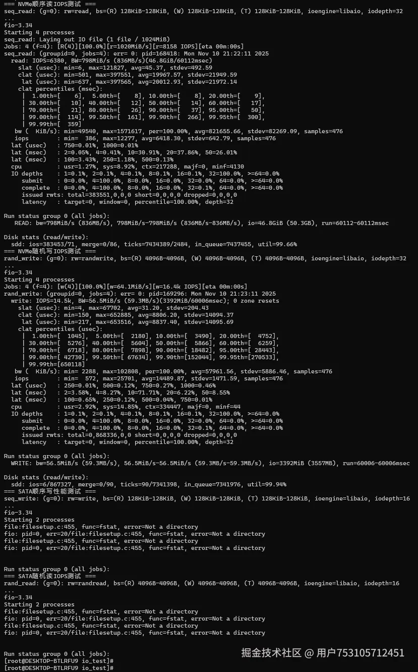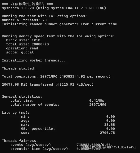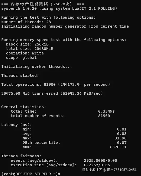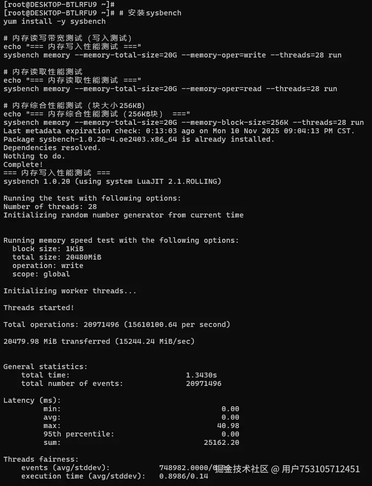 | 内存与IO性能 | sysbench、fio | 内存读写带宽、延迟;磁盘随机/顺序读写IOPS | 内存测试块大小256KB;磁盘测试覆盖NVMe与SATA |