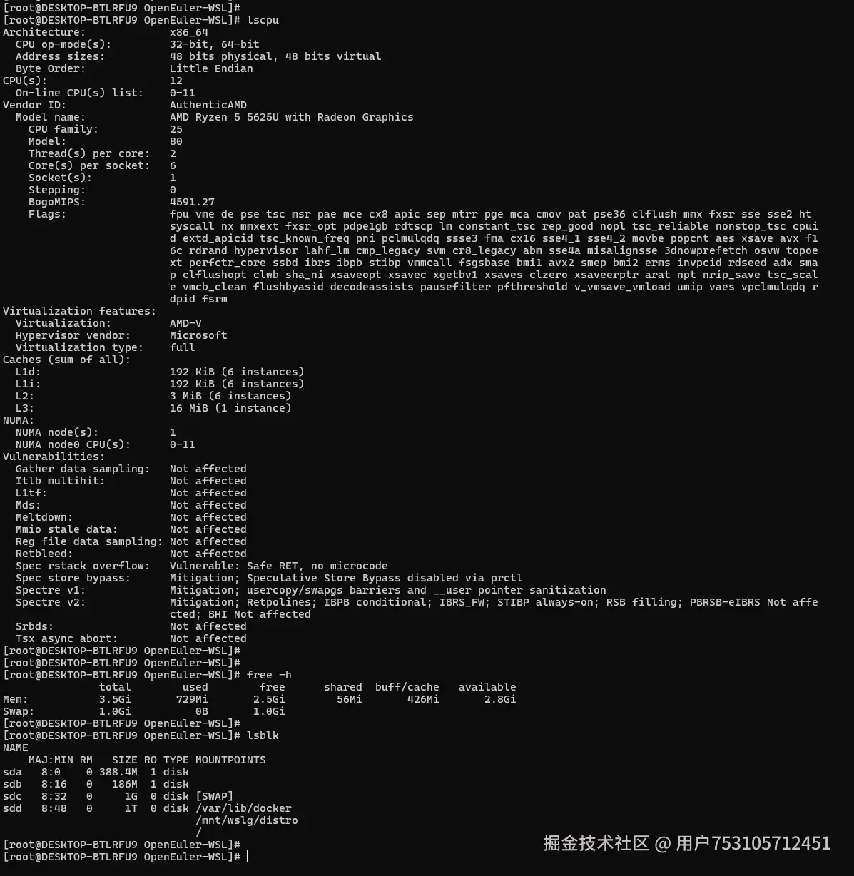 - 基础硬件适配验证:安装完成后,执行命令验证CPU、内存、磁盘等硬件识别情况: