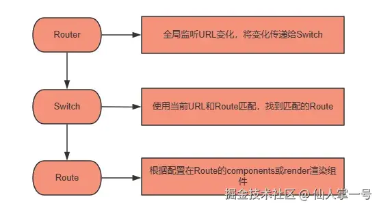 Route组件,根据从Router组件接收到的新location信息,和Route组件配置的path进行匹配,找到当前URL对应的Route组件