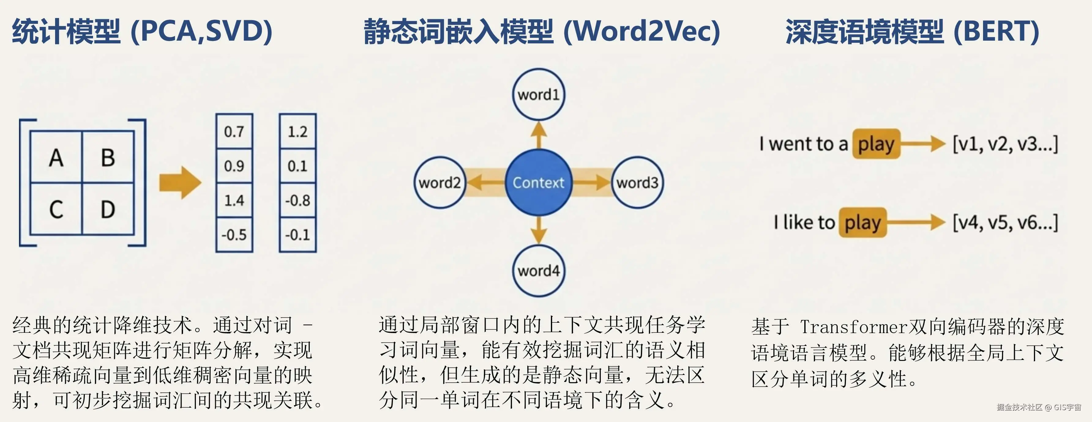 早期的嵌入模型(如Word2Vec)已经能够通过分析大量文本,发现单词之间的相似之处。但它们有一个局限:无法区分同一个词在不同语境下的含义。