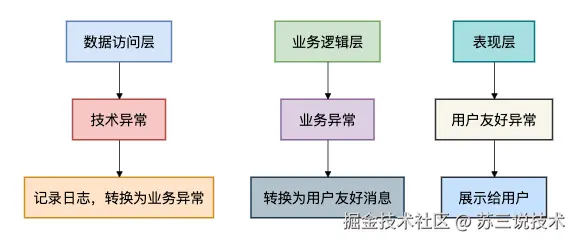 在架构层面,我们应该在不同层次采用不同的异常处理策略: