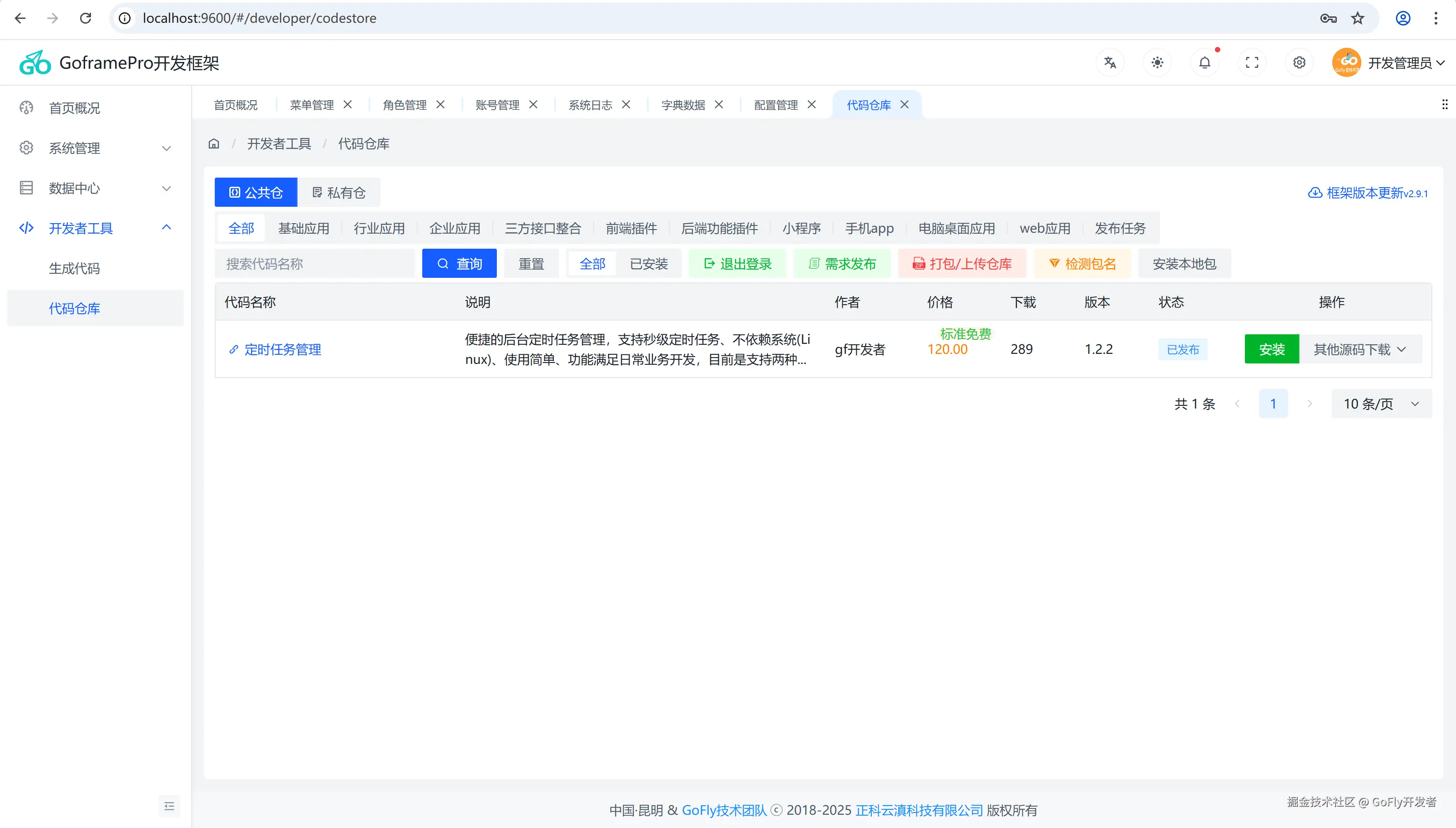 最后我们在浏览器打开:http://localhost:9600/ 地址就可以看到GoframePro后端管理界面了,下面是后台界面效果截图:
